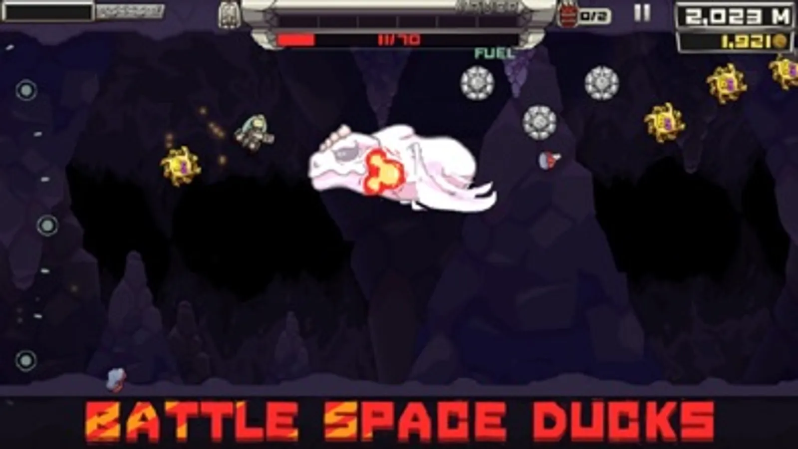 Pilot your Flop Rocket through a 5 kilometer cave filled with dragon-like Spaceducks, enormous rock-worms, and other space-time anomalies as you try to prevent an underfunded space program from going bust. Why is your space program housed in a cave? GOOD QUESTION.