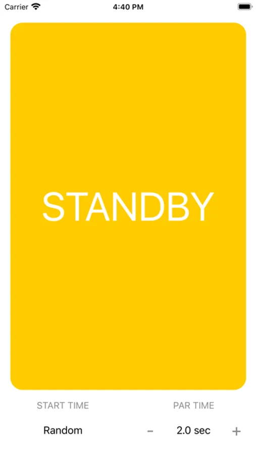 To change the start time, simply tap it to toggle between random and 3 seconds. To change the par time, simply tap it to type in a new par time, or use the plus and minus buttons to adjust tenths. Make sure your phone is not muted and the sound is up to hear sounds.