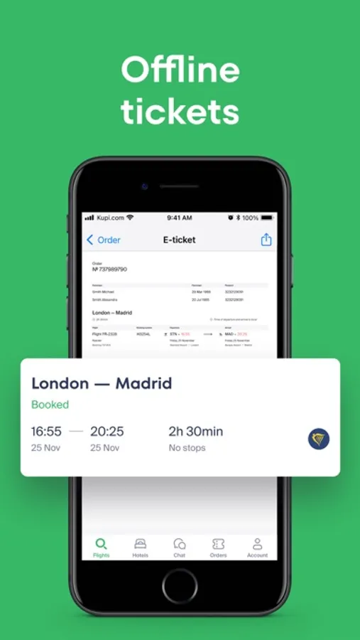 Receipts and ticket information are available offline. This helps avoid any tricky situations at the airport when you don't have Internet or Wi-fi access.