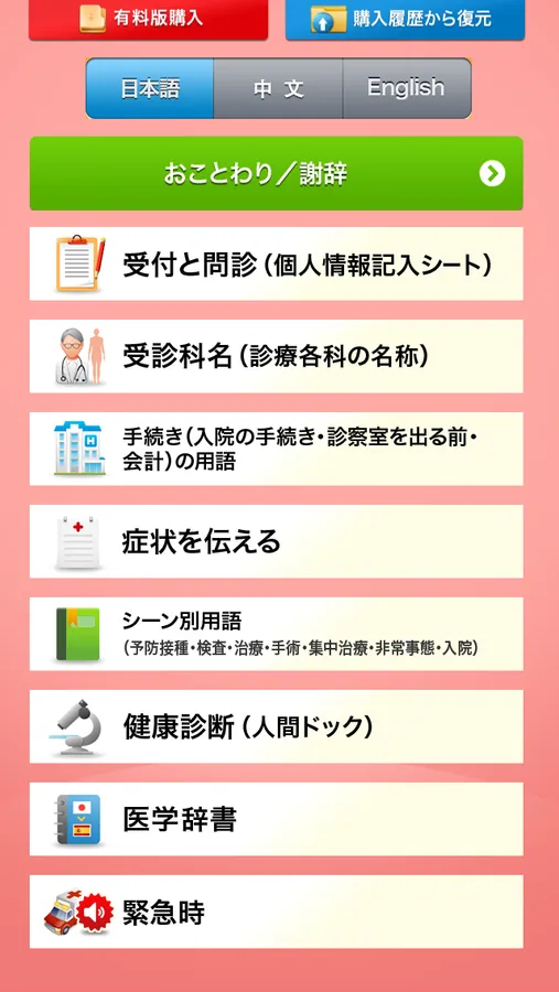 Medi Pass 中文・英语・日语・医疗词典 for iPhone