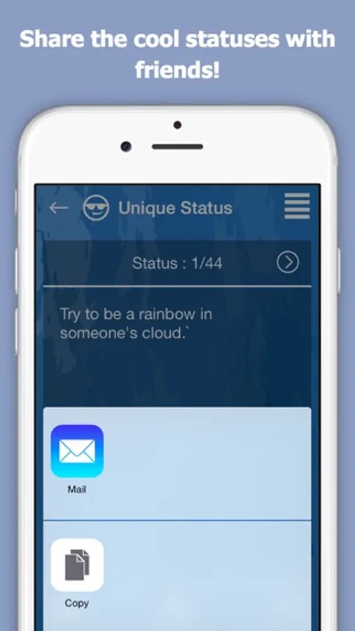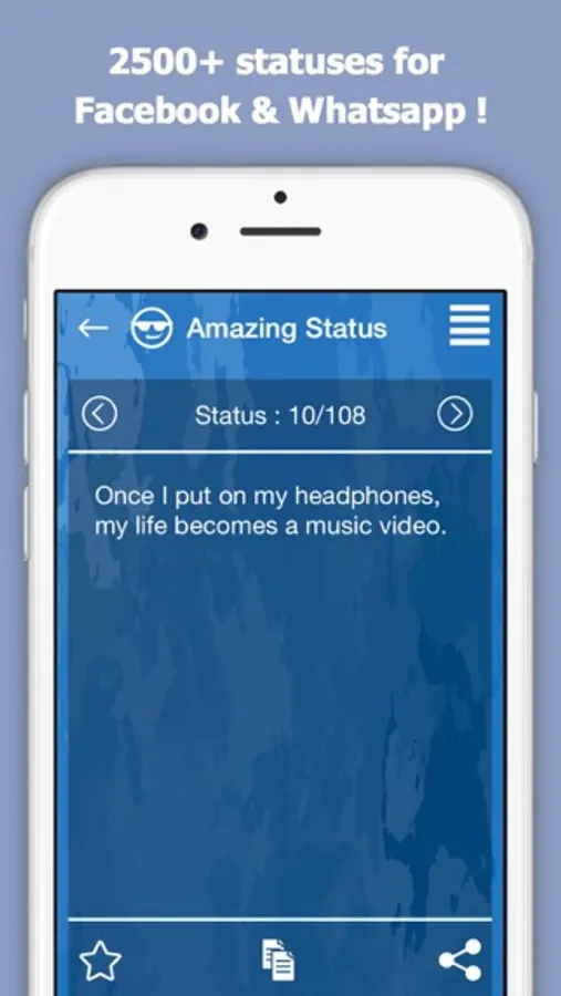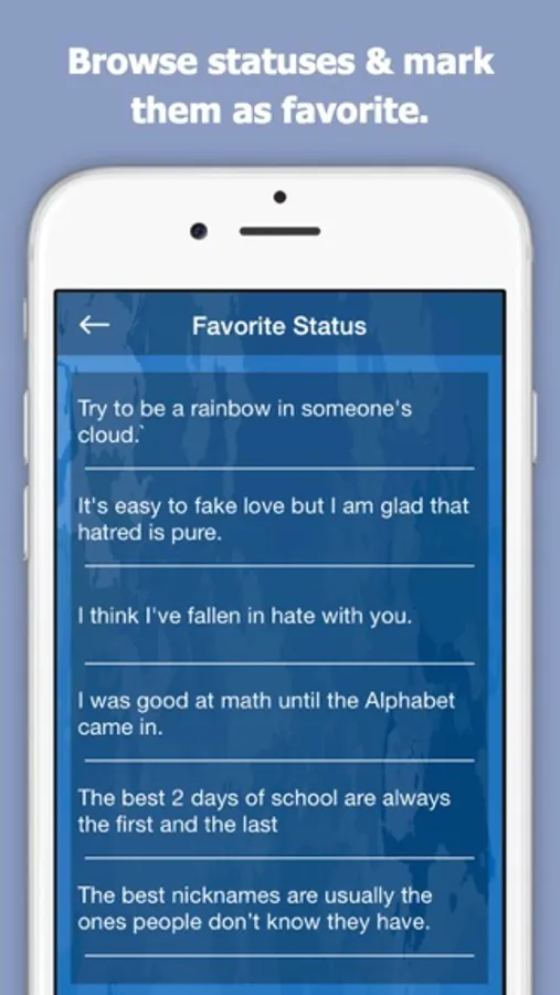 Update your Facebook, WhatsApp or Twitter status right from the app by copying it, or store your favorites for later.