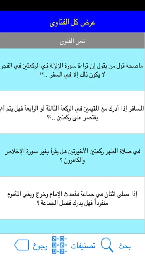 - تم تقسيم الفتاوى إلى تصنيفات متعددة حيث يمكنك عرض كل تصنيف على حدة