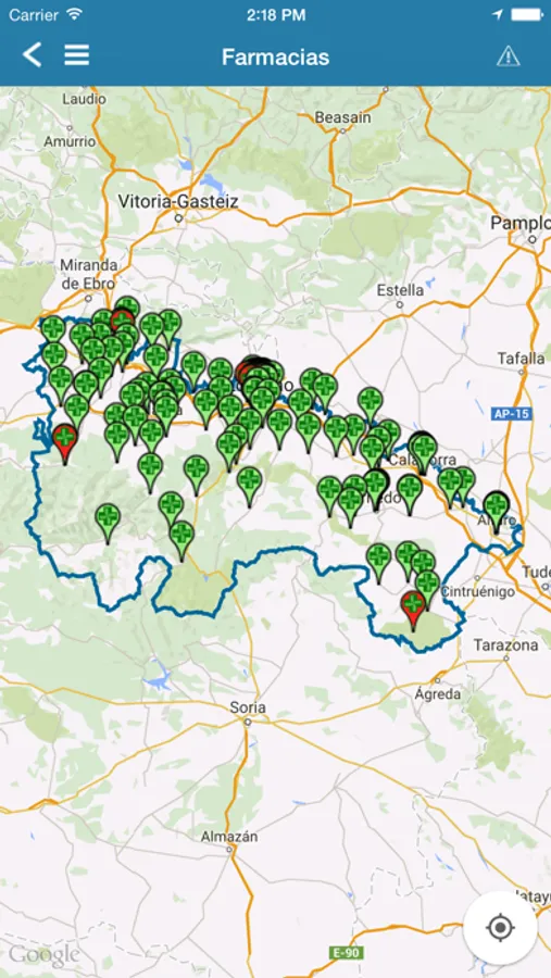 o Consultar los centros del sistema riojano de Salud así como las farmacias (diferenciando las de guardia). Para todos los centros puedes hallar la ruta más corta desde tu posición actual (requiere acceso al GPS) tanto andando como en coche, contactar por teléfono o acceder a su página web.