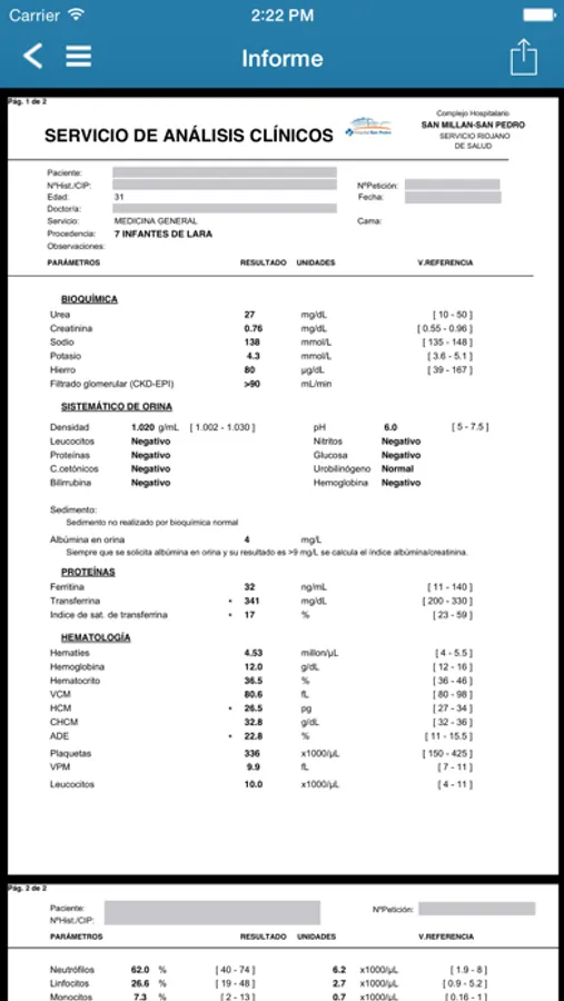 o Informes de especializada (informes de urgencias, de alta de hospitalización, de consultas externas, informes de las pruebas de imagen...)