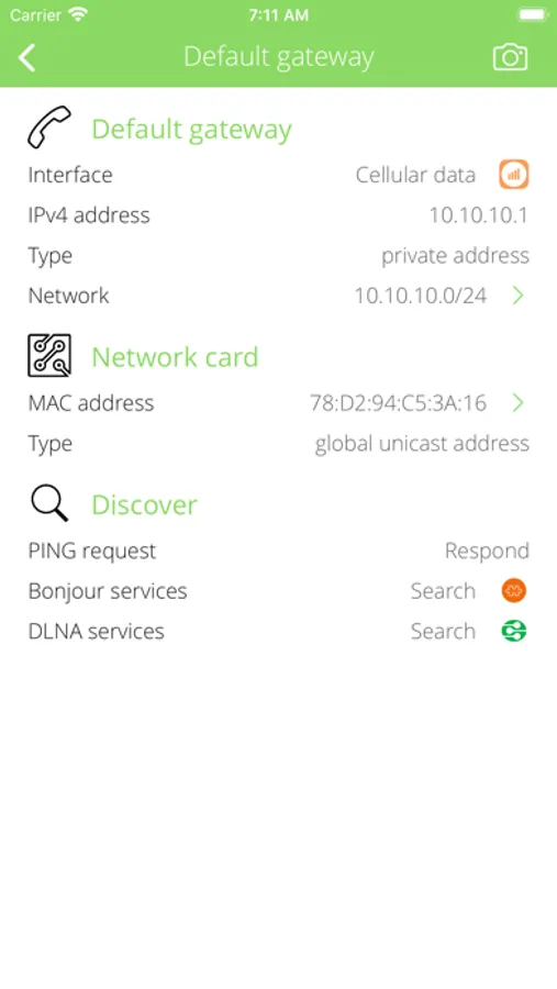 • Show DNS servers, search domain names, local MAC addresses, host name resolve.