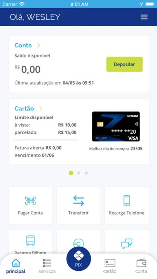 Concentre seus pagamentos de contas e recargas no SuperApp Credz. Recarregue telefone fixo e celular pré-pago, Uber, Spotify e jogos. Acesse e compartilhe os comprovantes dos seus pagamentos. Você ainda pode pagar à vista ou parcelado com seu cartão Credz Visa.