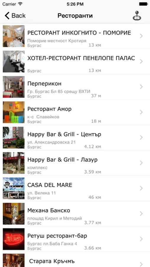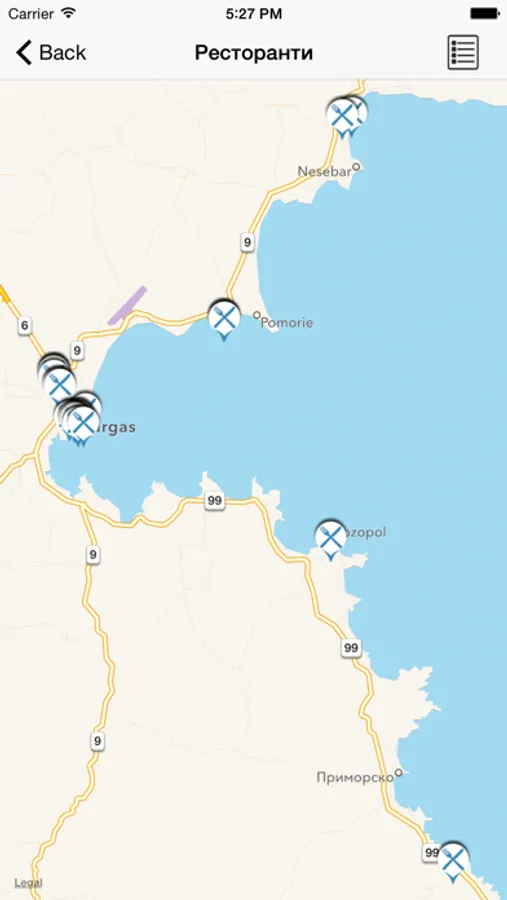 Бургас App мобильное приложение даст вам информацию о барах, кафе, ресторанах, клубах и гостиницы. Вы также найдете центры на курортах, близких к Бургас, таких как Несебр, Созополь, Поморие, Черноморец и другие.