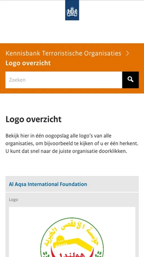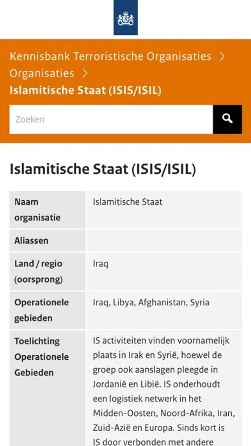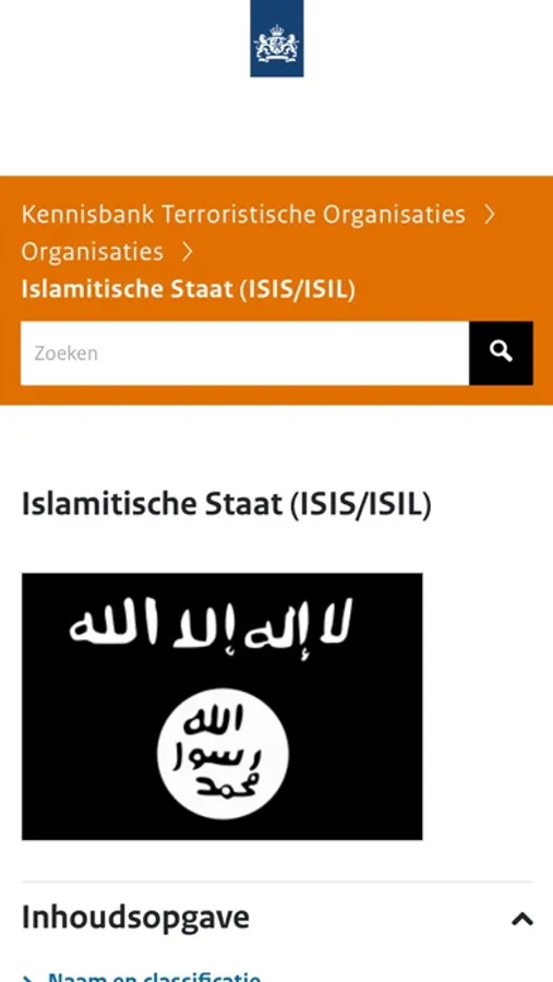 In de app ‘kennisbank terrorisme’ zijn foto's, logo's en actualiteiten opgenomen over organisatie die door de EU en VN worden gekenmerkt als ‘verboden, omdat zij verbonden zijn met terroristische activiteiten’. Steun verlenen aan het voortbestaan van activiteiten van deze organisaties is in Nederland bij wet verboden. In Nederland worden eerstelijns professionals steeds vaker geconfronteerd met uitingen of activiteiten die kunnen duiden op mogelijke betrokkenheid bij dergelijke terroristische groeperingen. Deze kennisbank is bedoeld om deze professionals in staat te stellen dergelijke uitingen of signalen vroegtijdig te onderkennen en herkennen. Ziet u een logo of beeld waarvan u vermoedt dat het behoort tot een terroristische organisatie, vergelijk deze met de informatie uit de kennisbank.