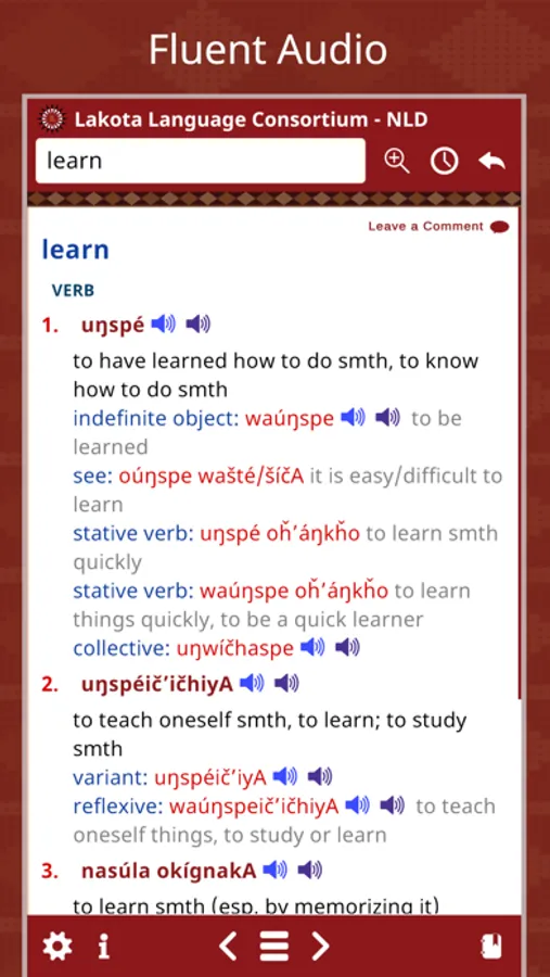 The New Lakota Dictionary (NLD) Mobile App is the best way to look up Lakota words, hear pronunciation, and view thousands of example sentences while on the go. It’s the ultimate electronic Lakota learning and reference tool.
