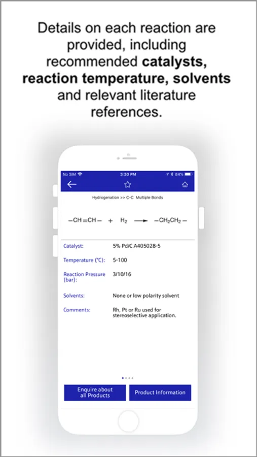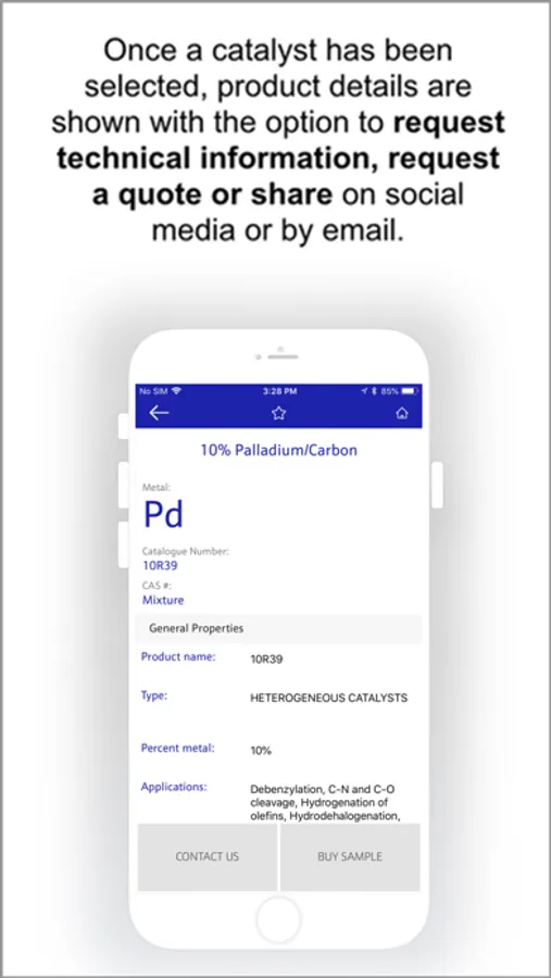 In addition to catalyst recommendations, the app features a convenient Chemical Abstracts Service (CAS) searchable product listing and relevant literature references as well as global contact information and office locations.