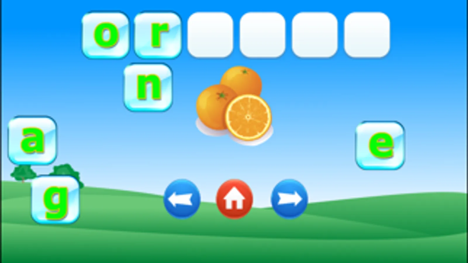 Application presents each word by displaying a picture and pronounces the word and presents the letters that are needed to make the word. Kids use there fingers to arrange the letters in the right order to make the word.