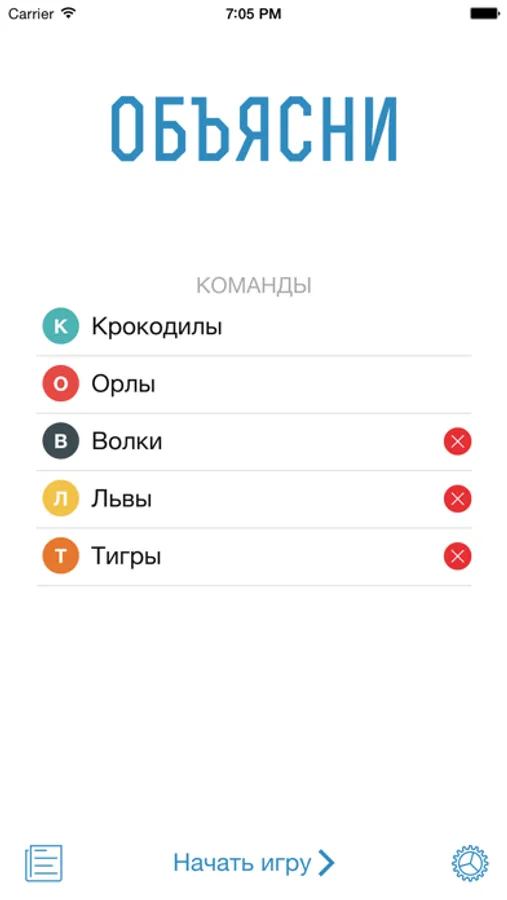 Смысл игры - объяснить игроку по команде то или иное слово, не используя однокоренные к нему слова.