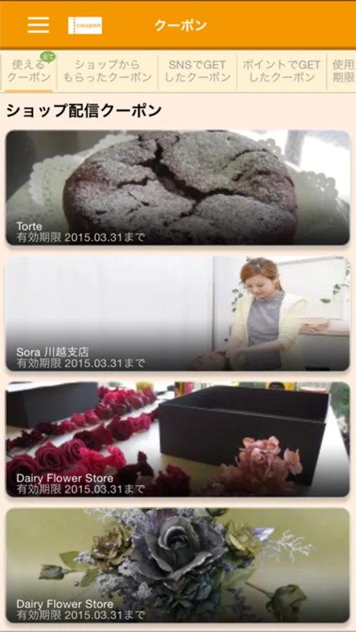 - クーポンの詳細情報(特典内容、有効期限)をいつでも確認。