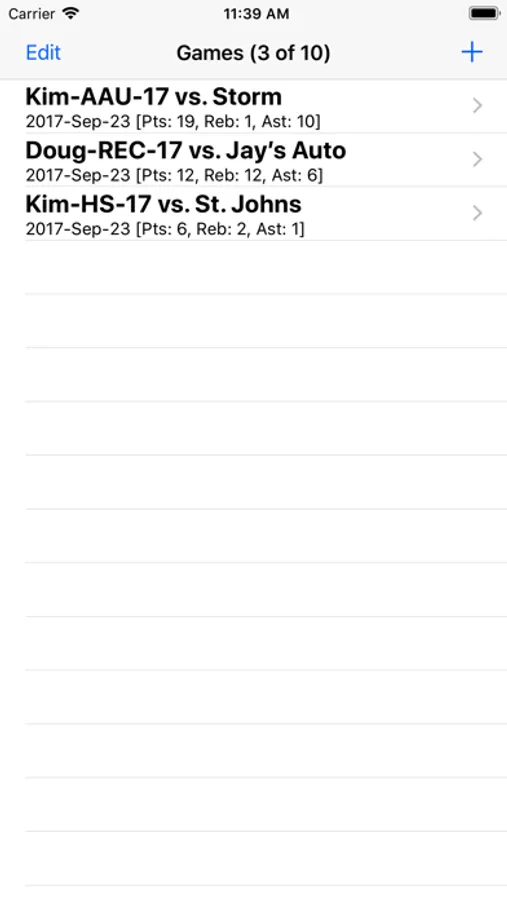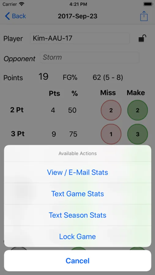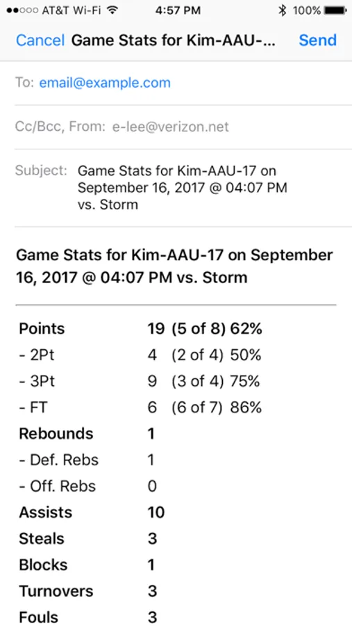 Games can be retained for as long as desired so it's easy to go back and review, correct or share stats. The FREE version allows scoring of up to 10 games. To score an unlimited number of games you must upgrade to the PRO version via an InApp purchase. Current game stats and multi-game stats can be shared via email or text directly from Hoop Counter. The multi-game stats are based on the the player name. For example, if you email a report for Rob-Rec-15, the multi-game stats will include all games stored with player name Rob-Rec-15. If you would like to track multiple seasons or players, simply add the appropriate suffix to the player name. For example, Rob-Rec-15, Rob-AAU-15, Mary-JV-15, etc...