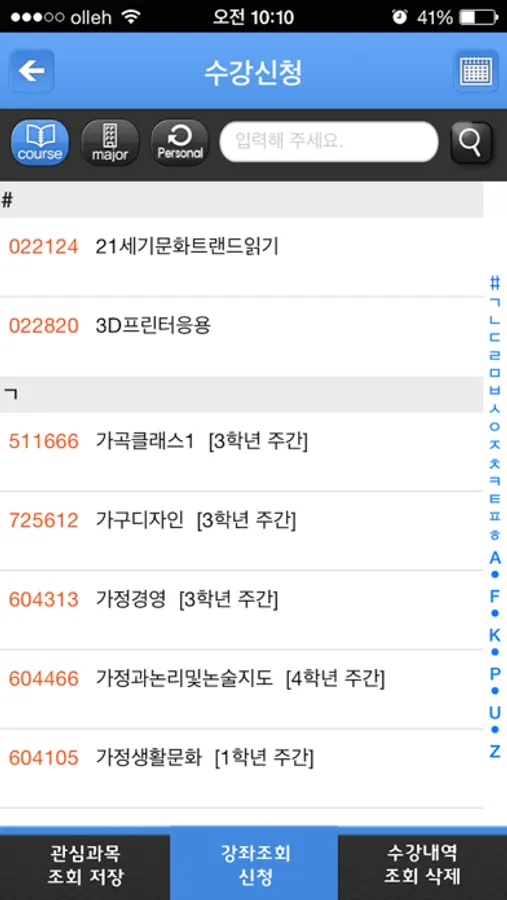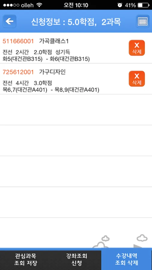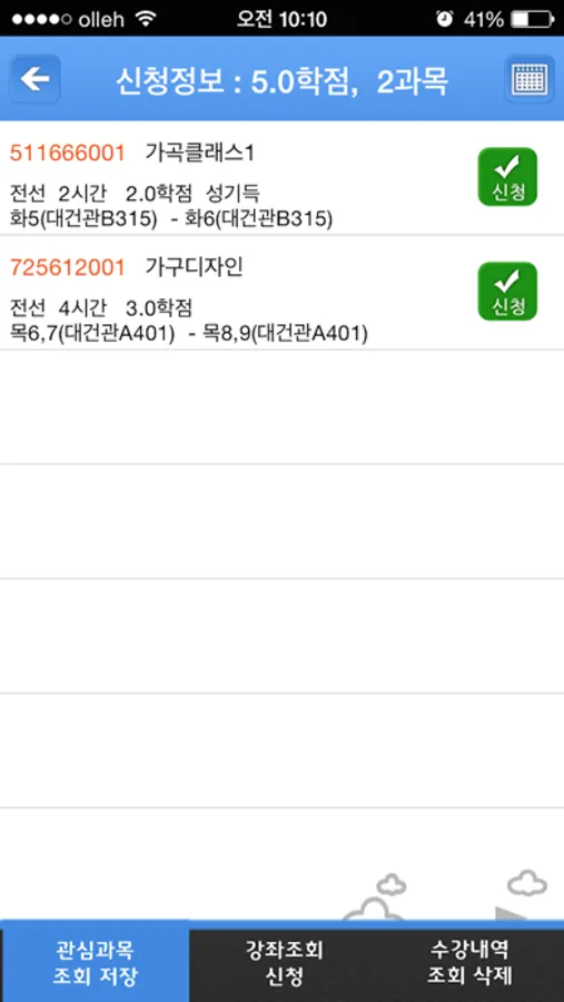 - 수강신청 내역조회