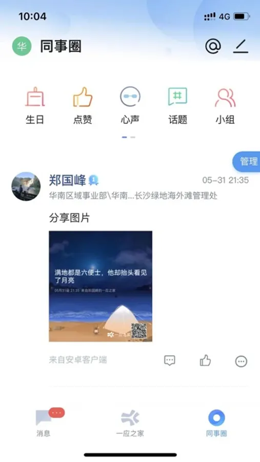 一应之家面向长城物业员工,是以组织、消息、社交为核心,提供协同工作、智能审批、智能考勤等功能的移动办公平台。