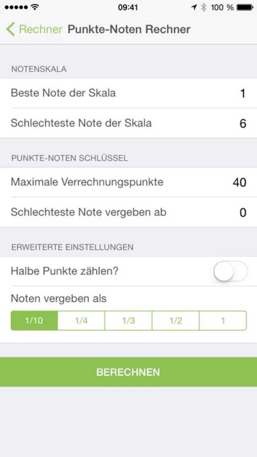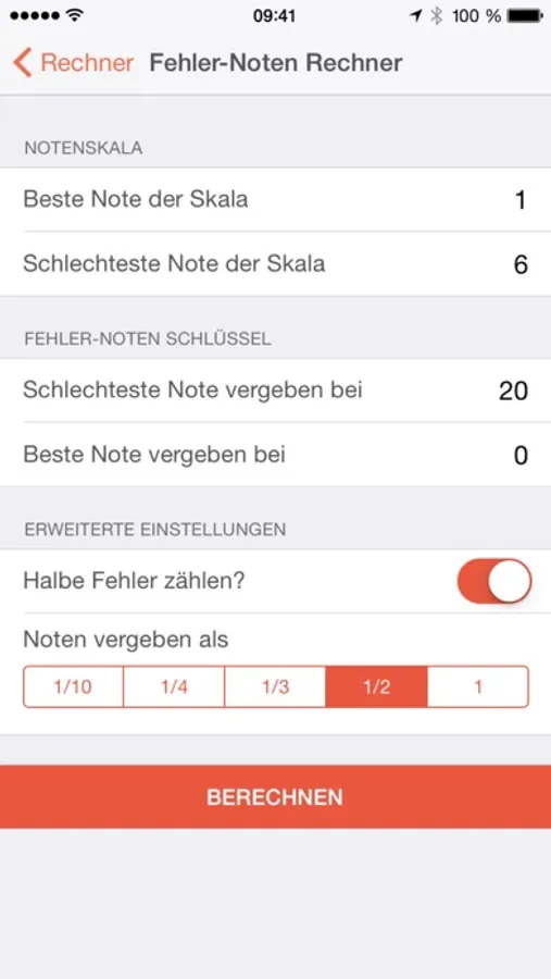 Halbe Punkte/Fehler können mit in die Berechnung eingebunden werden.