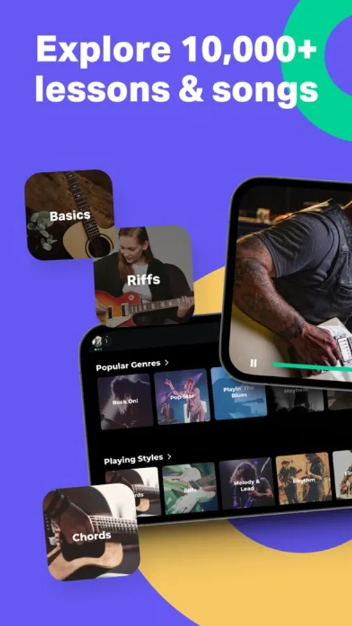 • 10,000+ lessons, exercises and songs by artists you love