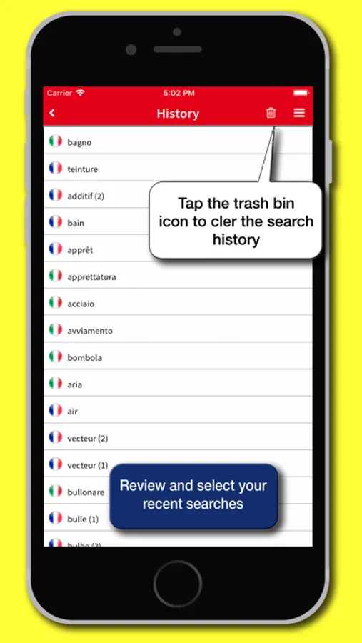 • History: keeps a record of the searches performed