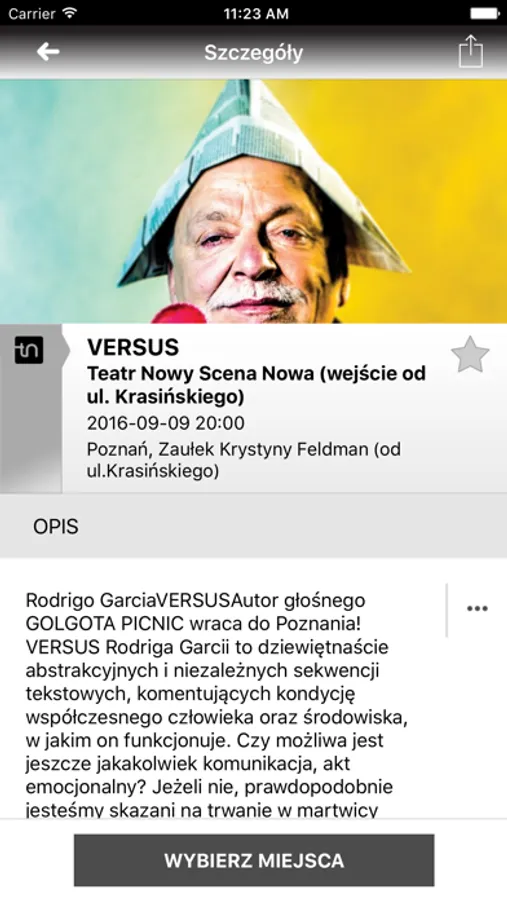 - ustawianie w kalendarzu przypomnień o spektaklu,
