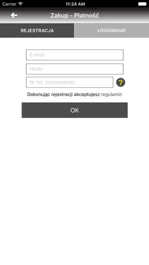 Aby uzyskać dane logowania do aplikacji, należy zarejestrować się podczas zakupu biletu.