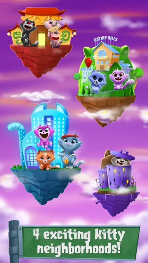> 4 neighborhoods to explore – Catnip Hills, Chinatown, Downtown and the Gutters – each with its own collection of adorable and hilarious kittens.