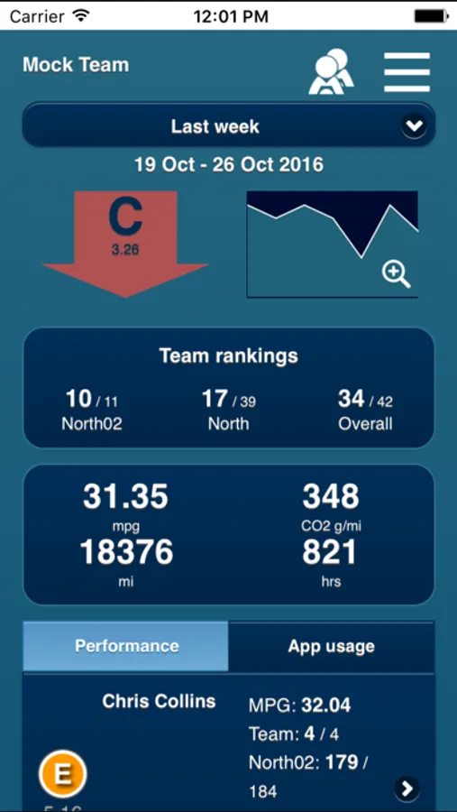 The app gives drivers a detailed view of their performance against a number of criteria, and provides advice and tips to achieve improvements.It also gives drivers a view of their performance compared to others in their teams.