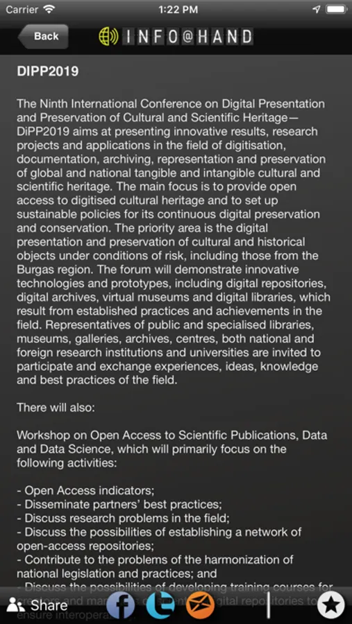 The Thirteenth International Conference on Digital Presentation and Preservation of Cultural and Scientific Heritage is organized under the UNESCO patronage. The first Conference hold at the Regional Museum of History and P.R. Slaveykov Regional Public Library in Veliko Tarnovo, Bulgaria, on September 2011. The conference aims at presenting innovative results, research projects and applications in the field of digitisation, documentation, archiving, representation and preservation of global and national tangible and intangible cultural and scientific heritage. The main focus is to provide open access to digitised cultural heritage and to set up sustainable policies for its continuous digital preservation and conservation. The priority area is the digital presentation and preservation of cultural and historical objects under conditions of risk, including those form Veliko Tarnovo region. The forum will demonstrate innovative technologies and prototypes, including digital repositories, digital archives, virtual museums and digital libraries, which result from established practices and achievements in the field. Representatives of public and specialised libraries, museums, galleries, archives, centres, both national and foreign research institutions and universities are invited to participate and exchange experiences, ideas, knowledge and best practices of the field.