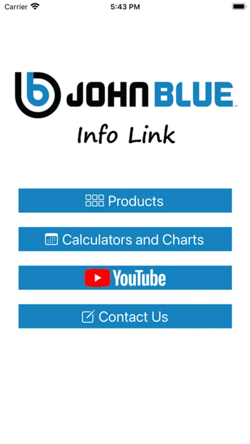 This app gives you quick access to tools and information about our John Blue line of products. This includes: