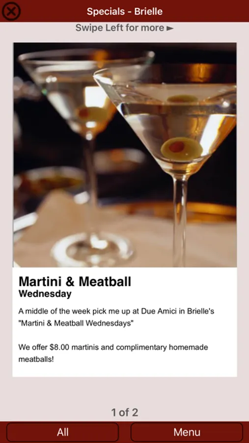 The Due Amici app is free and you will begin receiving information soon after it is downloaded. Watch for push notification specials, promotions and up-to-date information.