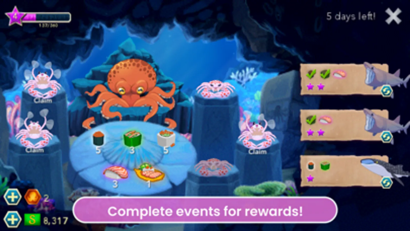 Document your fish discoveries in the Aquapedia, and learn fascinating real-world facts about each fish species you uncover. Capture photographs of your favorite fish, take part in events to collect new fish species, and connect with friends to exchange gifts and help each other grow your fish sanctuary.