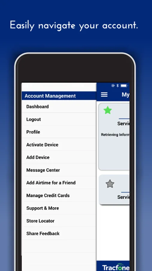 Take command of your wireless service, anywhere at any time! The TracFone My Account App lets you manage most aspects of your wireless service right from your phone.