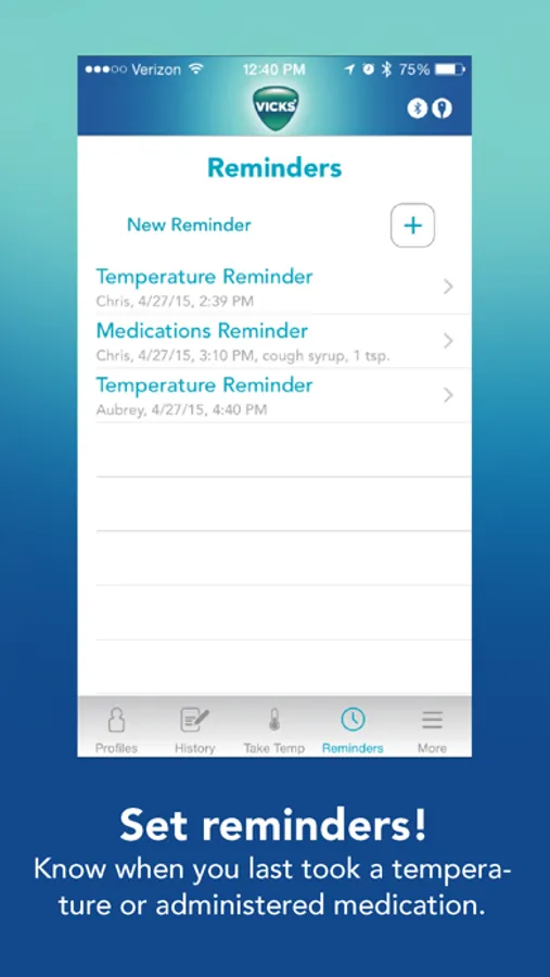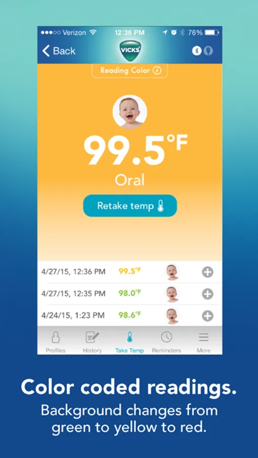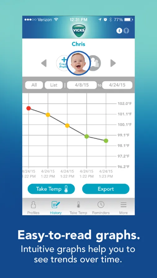 The Vicks® SmartTemp App works with the Vicks® SmartTemp Thermometer to make it easy to take and track temperatures for the entire family.