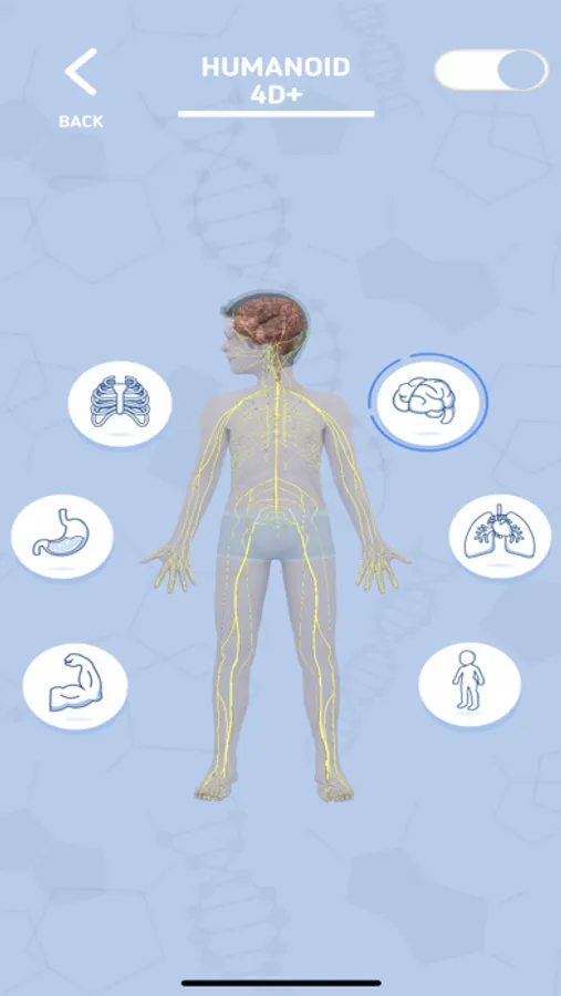 Just point the app to the marker and start exploring the parts from Skeletal System, Muscular System, Respiratory System, Digestive System and Skin.