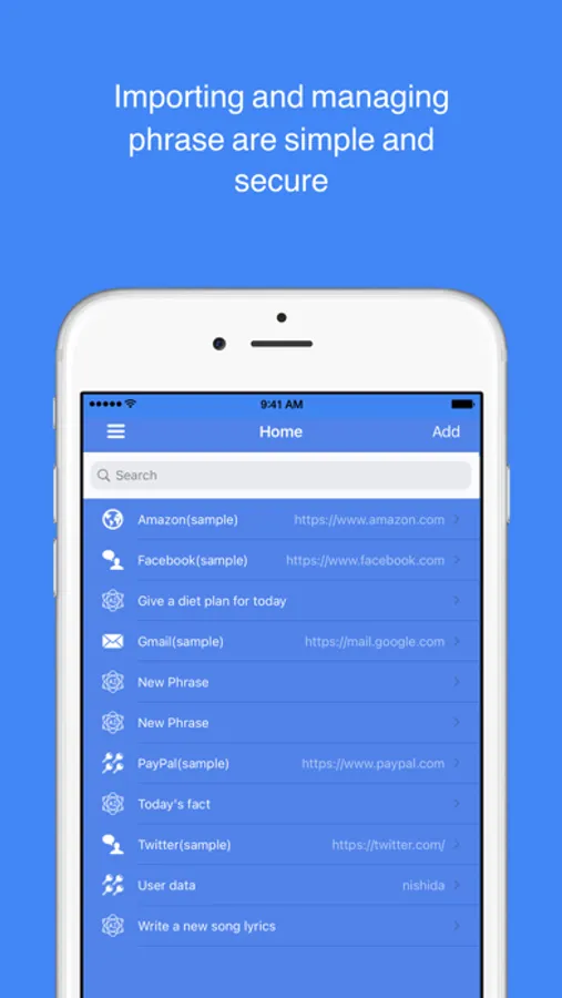 - Login to any services and websites with just a few taps.
