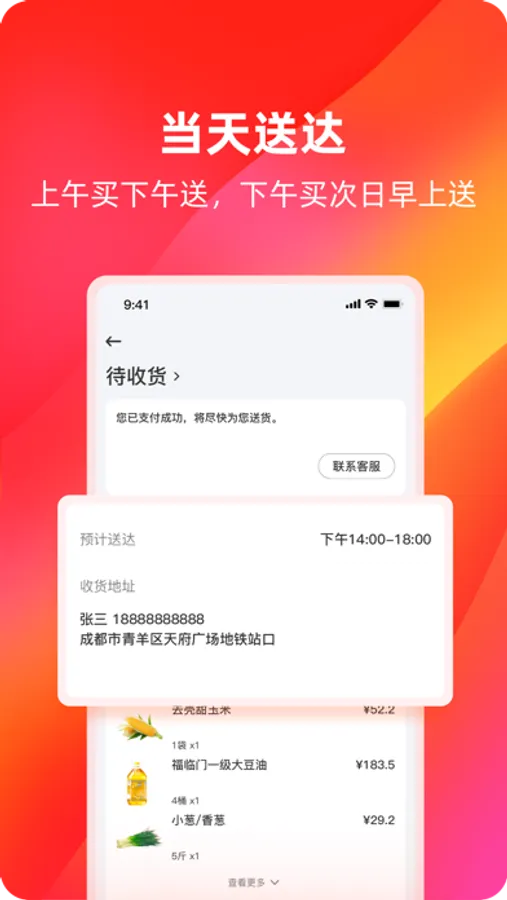 【当天送达】上午买下午送,下午买次日早上送,不用再每天早起去买菜,省力!