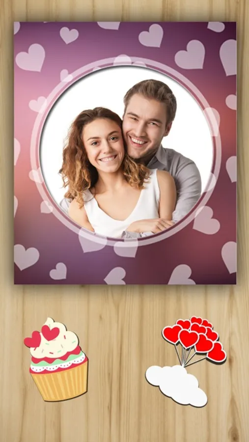 • Select the photo frame and make a photo or select a picture from your image gallery. You can add text with different fonts, colors and sizes or add a sticker of LOVE with hearts and romantic themes. Save or share the picture with your boyfriend or girlfriend or whoever you want.