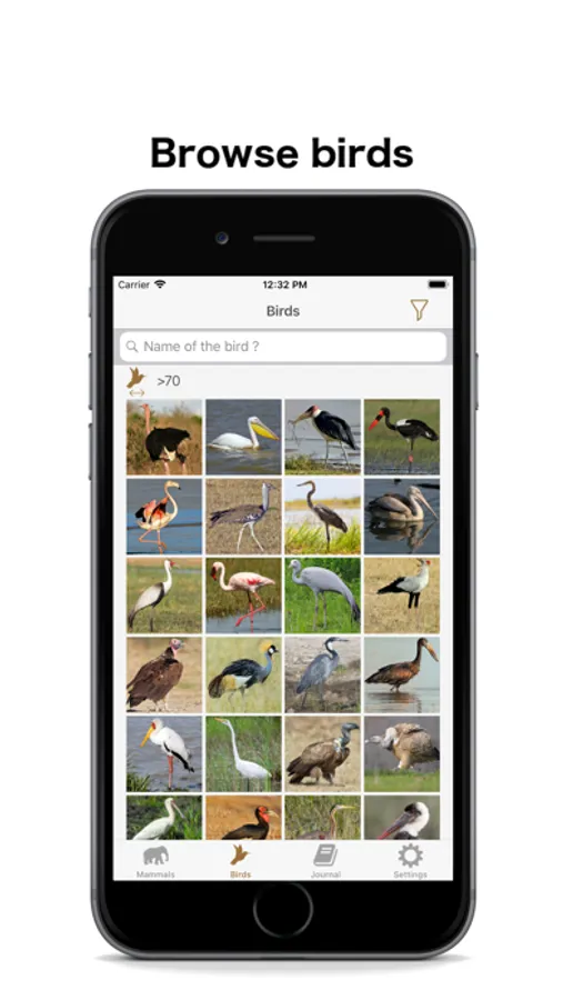 Sometimes the differences in appearance and body shape are minimal, for instance as is the case with the sand grouse, woodpecker, ibis etc. However, thanks to the family name in the search menu, you'll at least be able to identify to which order the bird belongs.