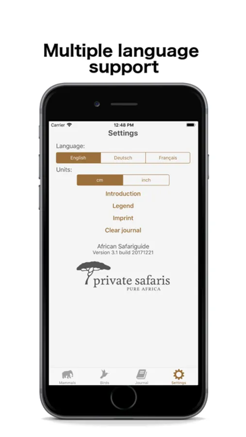 This app allows visitors to identify 70 mammals and 121 birds, which a "normal tourist" would be most likely to see. Once you have identified the animal you have spotted, press a button to list it with date and time of observation, a feature that will help you later when you come to sort your photos once home.