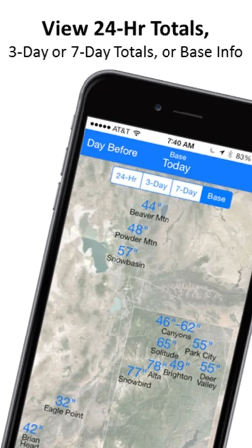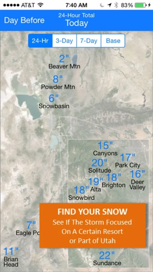 - See the same statistics for past dates by swiping left or right on the map. This lets you see how much snow each resort received yesterday, two days ago, etc.