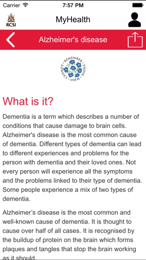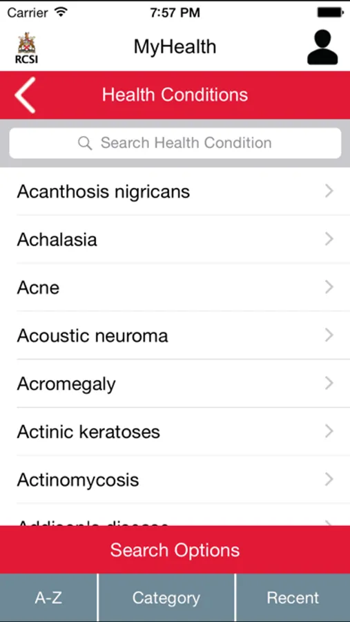 The RCSI MyHealth App is dedicated to providing easy access to credible health information. More than 600 medical conditions are listed as well as providing contact information for some of Ireland’s leading charity organisations.