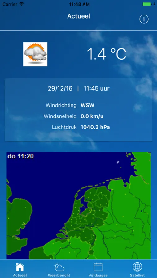 - Het actuele weer: de temperatuur, windrichting, windsnelheid en luchtdruk