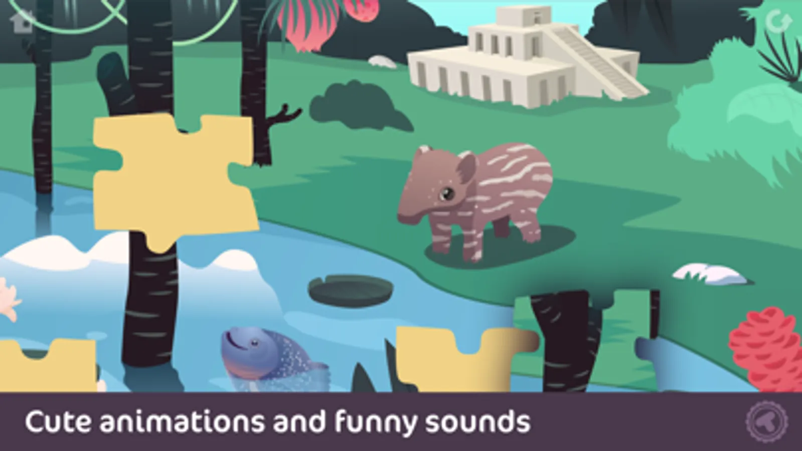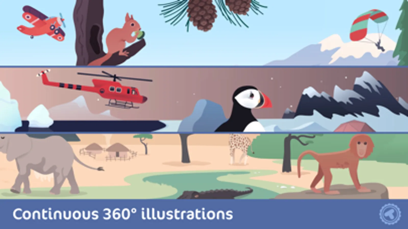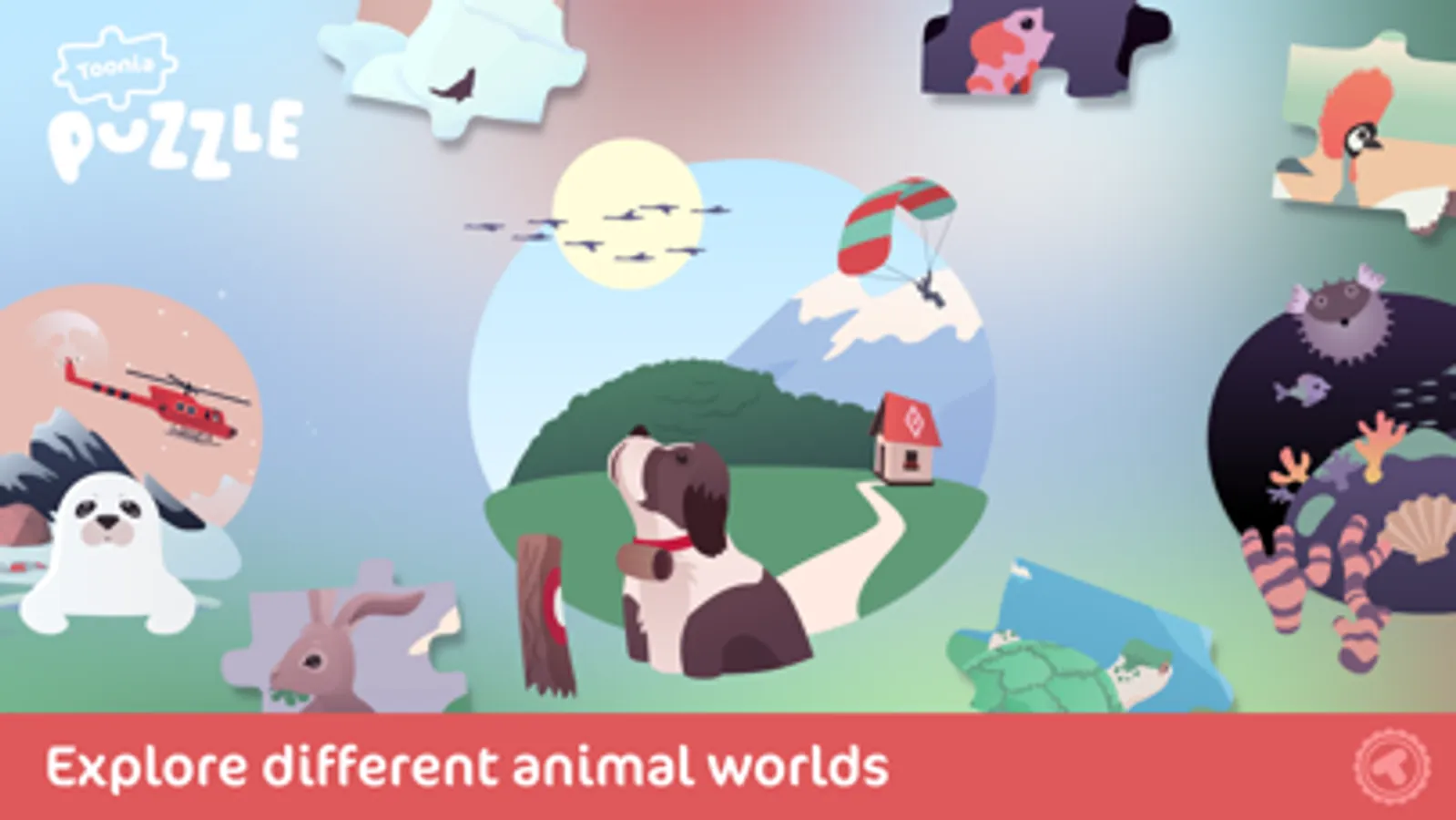 Toonia Puzzle uses a new approach to a traditional jigsaw puzzle game. It includes continuous 360° illustrations with no beginning and no end. Gameplay is simple and the rules are very loose - you can start anywhere you wish and continue in any direction you want. Each illustration comes with more than 70 unique pieces, fun animations and engaging sounds. Just tap the animals you like and hear their sounds.