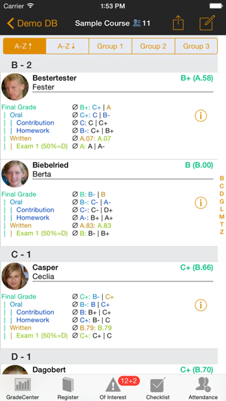 If a proposed grade is not in compliance with your pedagogic standards, you can make individual adjustments to the grade computation process at your discretion!