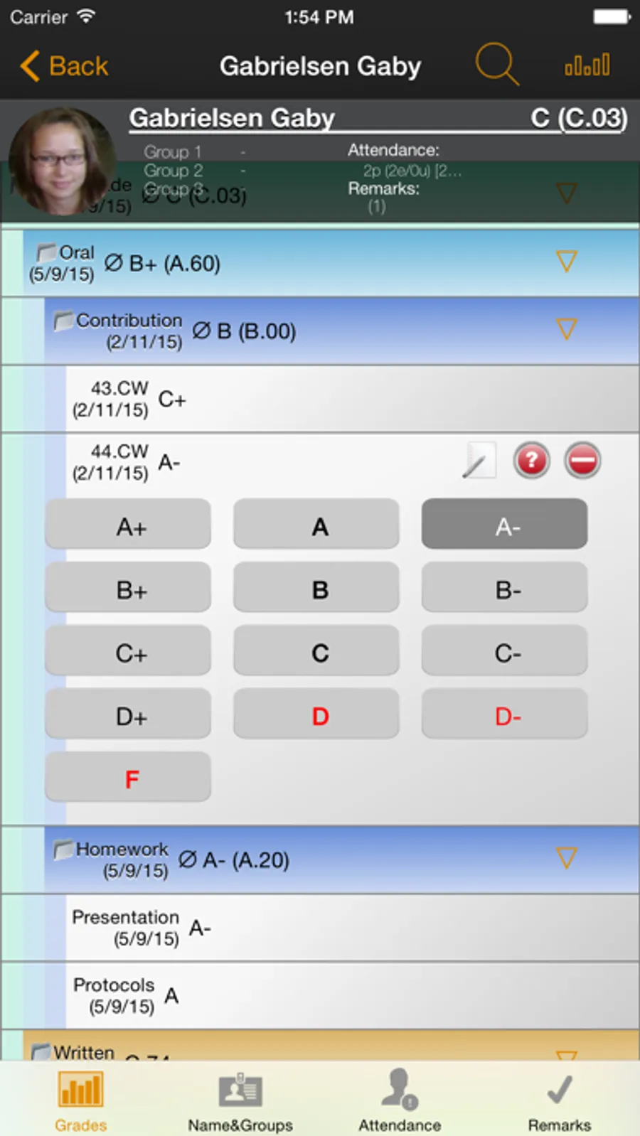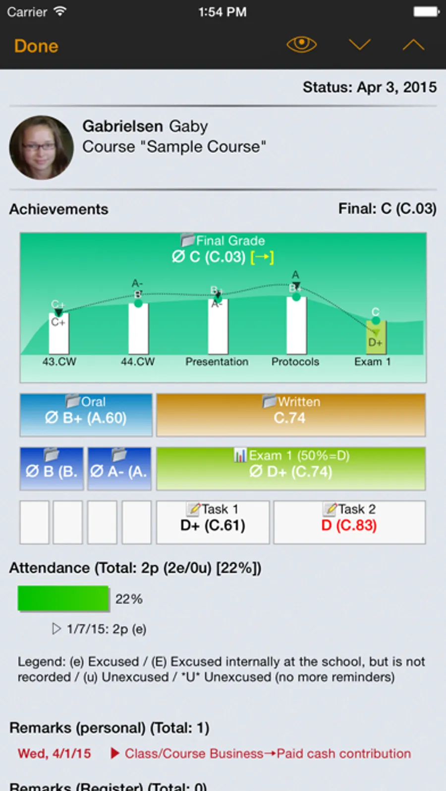 If, for instance, a student inquires about his or her grade status, you will be able to spontaneously review with the student, criterion by criterion, his or her performance development based on compelling graphics.
