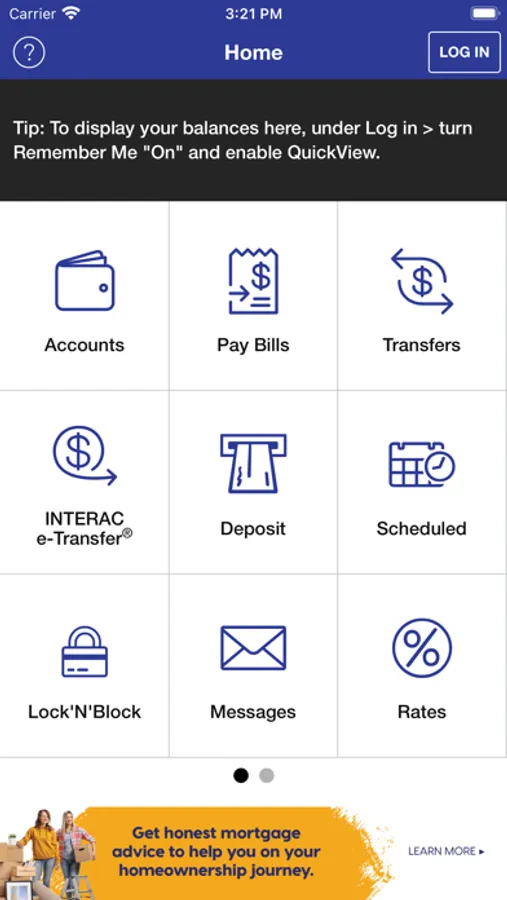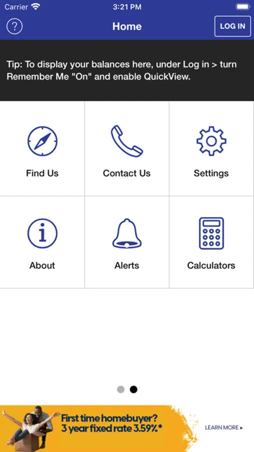 To take advantage of the full functionality of this app, you must already be registered and have logged in to online banking. If you are not an online banking member, you can still use the Branch/ATM locator, Rates and our Contact Us information.