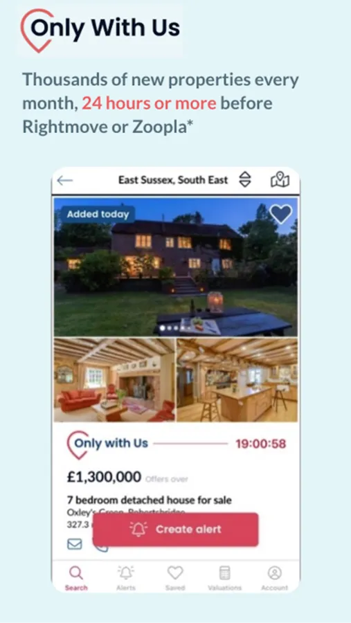 Thousands of estate and letting agents are advertising at OnTheMarket. We get thousands of new properties every month, 24 hours or more before Rightmove or Zoopla*. If you're looking to buy or rent, make sure you don't miss out – download our app and set up an instant property alert today.