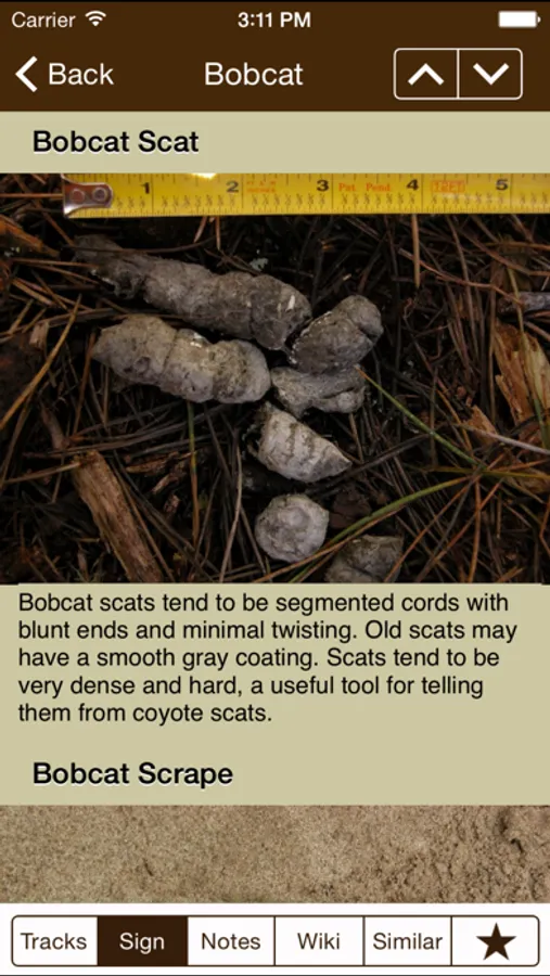 The app also contains illustrated help guides that offer numerous tracking tips and trick, including: illustrated explanations of gait patterns, measuring tracks, and track anatomy.