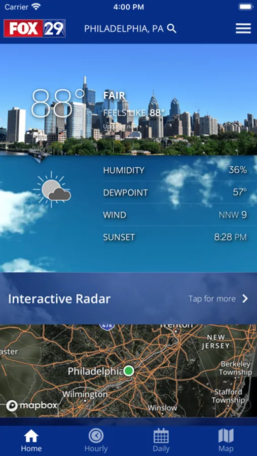 Track Storms with Live Interactive Radar, see Current Conditions, check Hourly or 10-day Forecasts, get School Closings, watch FOX 29 videos and Live Streaming Newscasts all on FOX 29's FREE Weather Authority app.