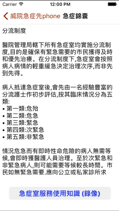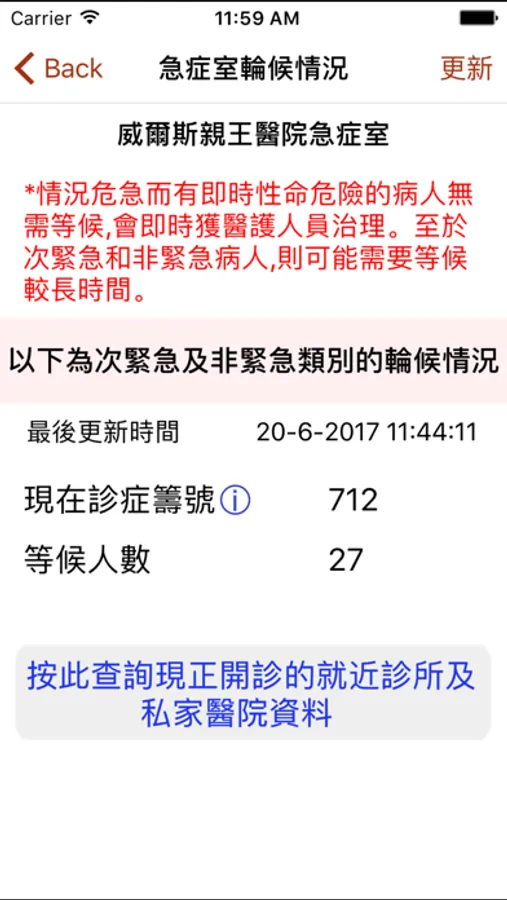 此應用程式提供威爾斯親王醫院急症室服務及分流制度簡介、現時輪候情況,及附近現正開診的診所聯絡方法,供市民參考以選擇適合的求診途徑。